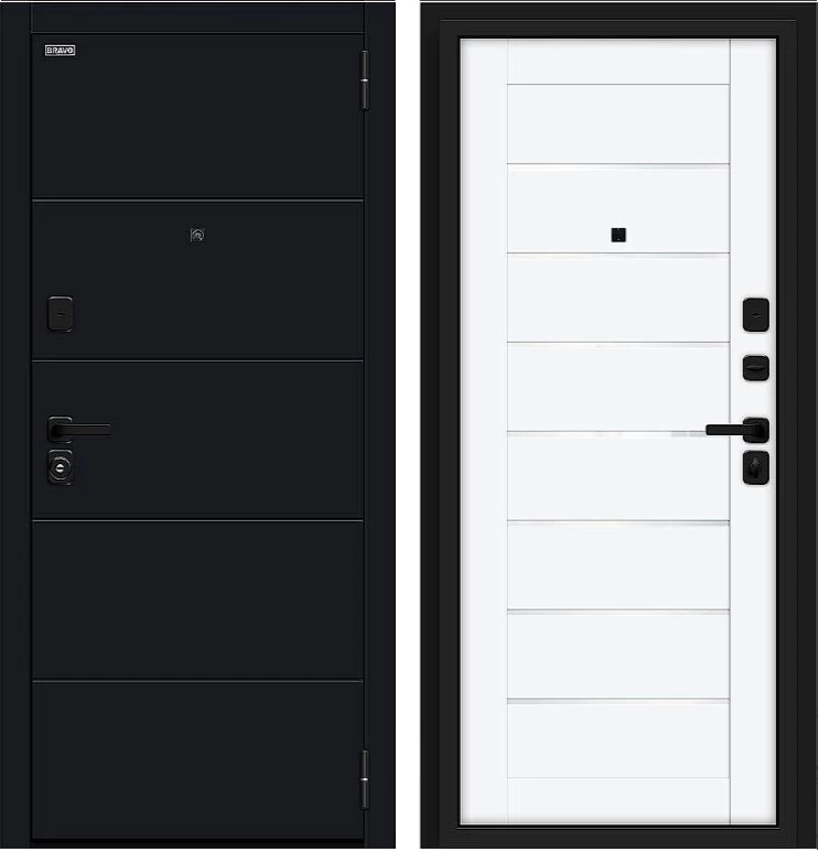 Надежная входная Дверь Браво Прайм/SBlack-Black Shell/White Silk премиум класса по цене 40 383 руб. Большая толщина стали защитит от проникновения в ваш дом, квартиру или коттедж. Используется очень качественная фурнитура: замки, цилиндры, ручки, защелки. Покрытие и отделка двери изготовлено под внимательным контролем производителя. Дверь имеет долгий срок службы и гарантию.