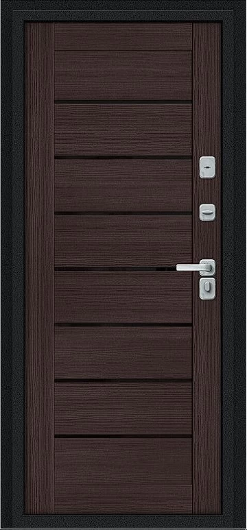 Дверь Браво Thermo Техно Д2/BChrome Букле черное/Wenge Melinga - недорогая эконом класса по цене 4 583 руб., отлично подходит для временной установки в квартиру под сдачу, строительство, ремонт. Не смотря стоимость, модель хорошего качества.